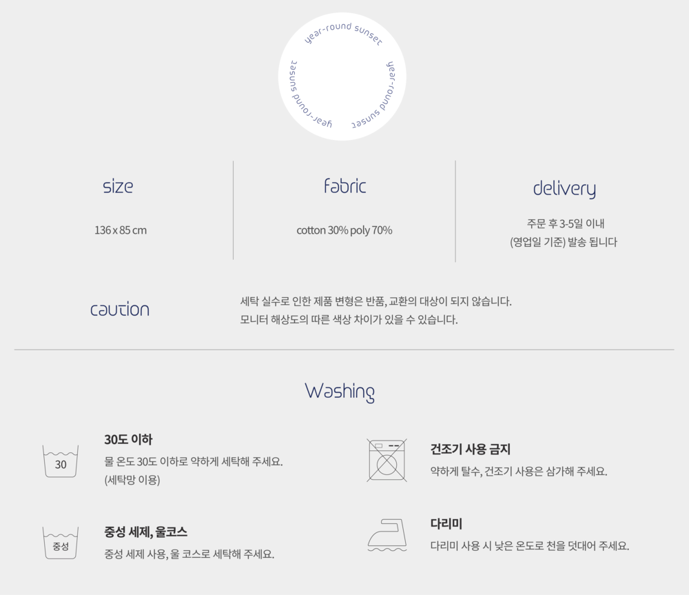 가로 135* 세로 85cm / cotton 30%, poly 70%