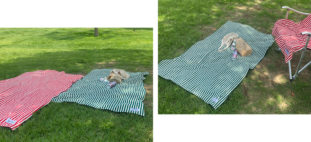 비치타월 겸 캠핑매트로도 사용할 수 있는 테리 소재 '멀티 타월' 제품입니다